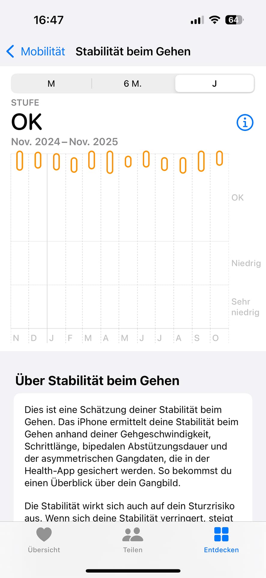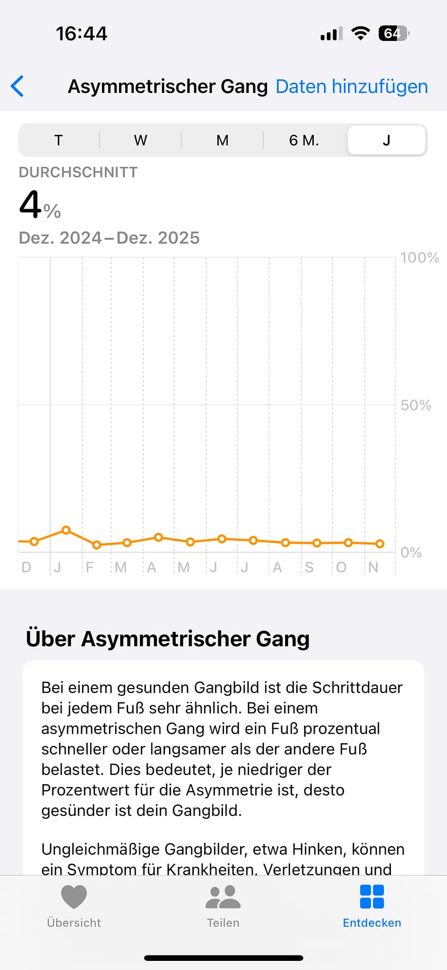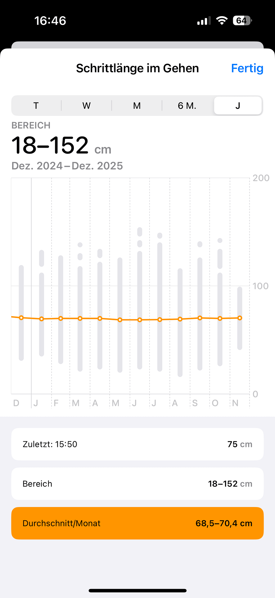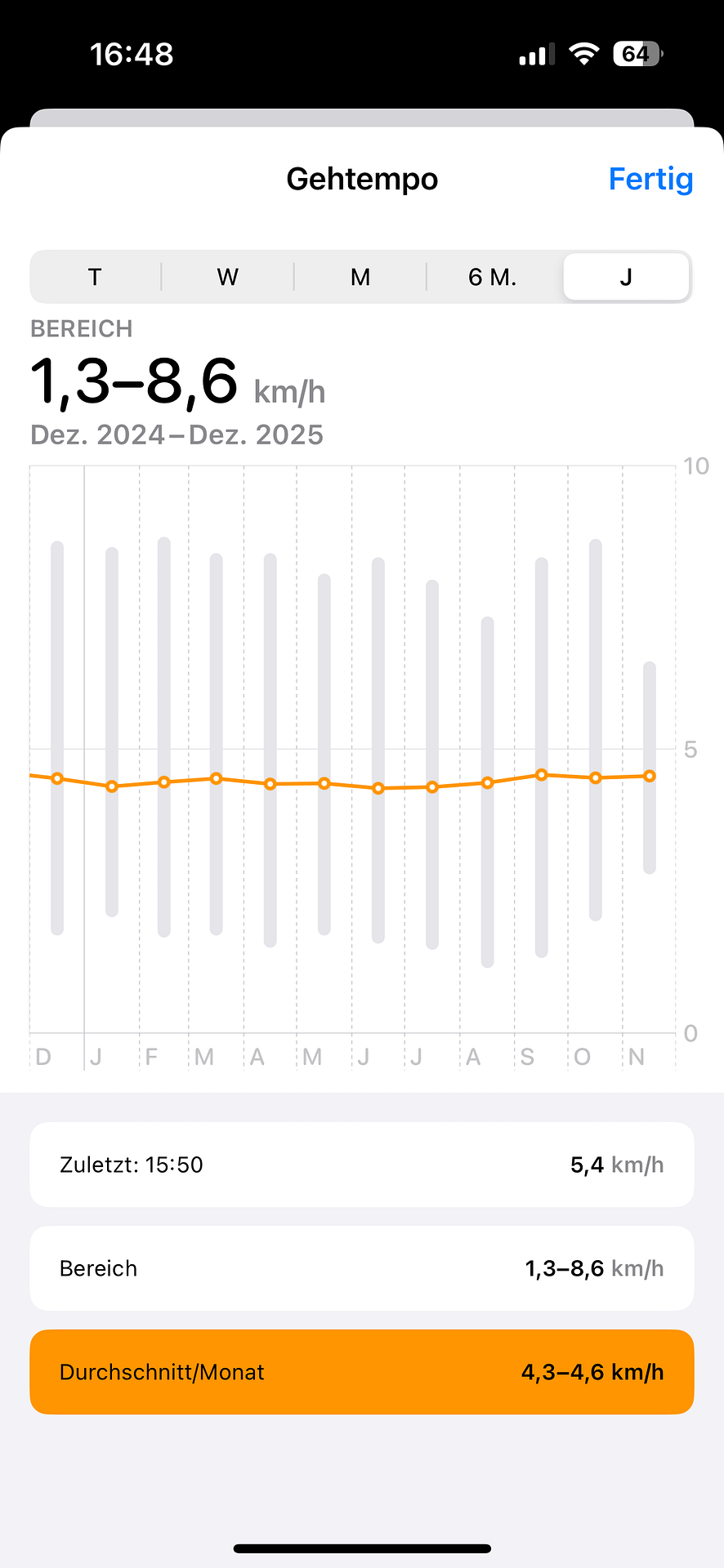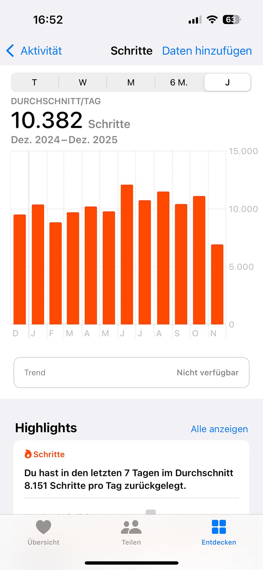 Schritte: durchschnittlich > 10.000 Schritte/Tag