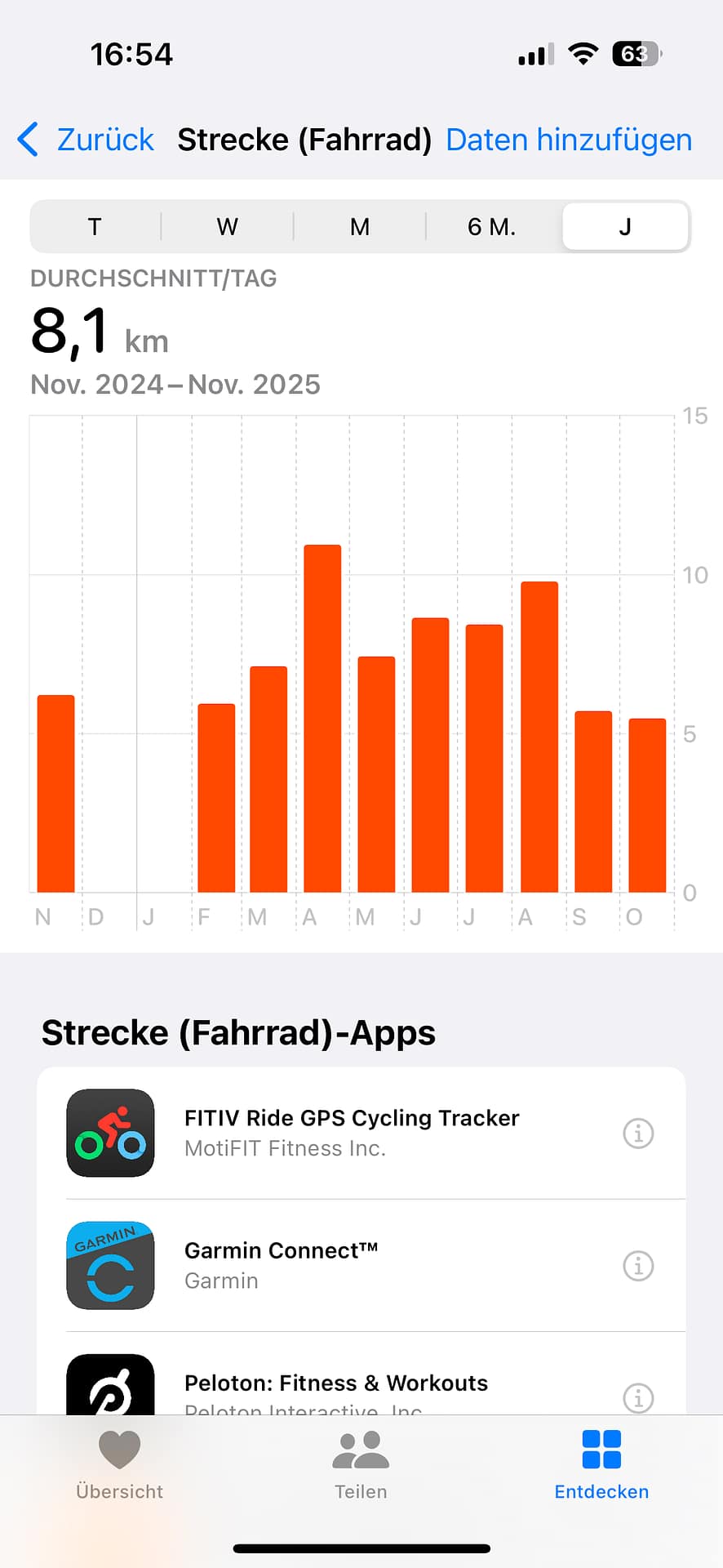 Fahrradfahren: durchschnittlich > 8 km/Tag